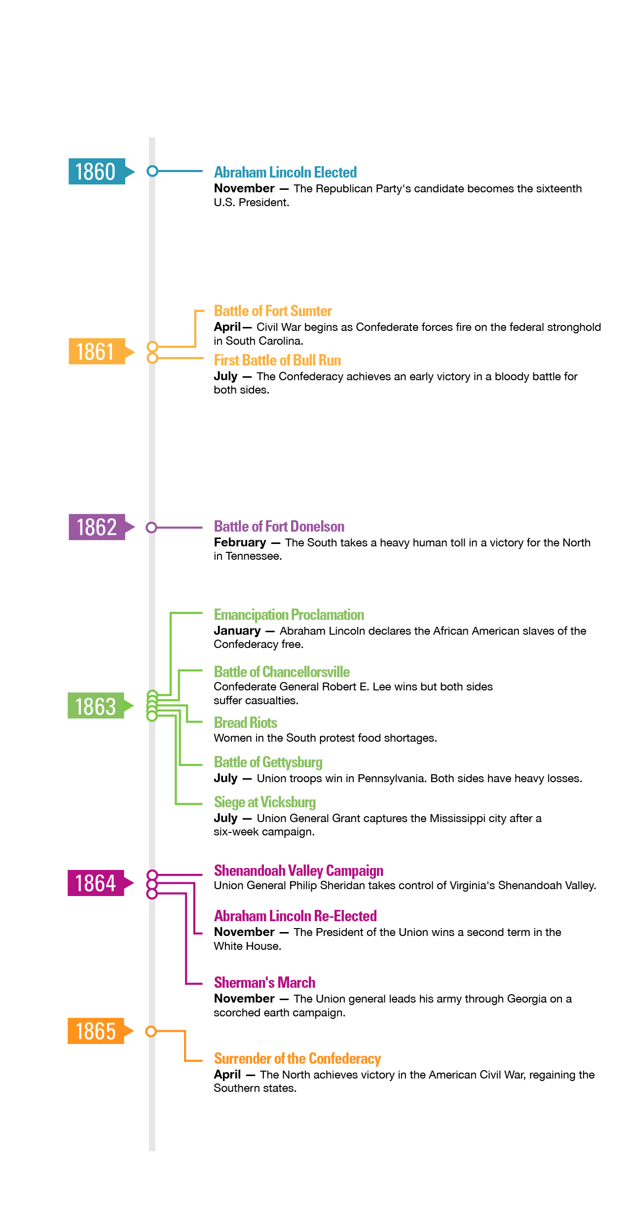What effect did the American Civil War have on the populations of the North and the South, according to the timeline?